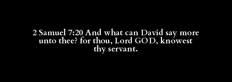 2 Samuel 7:20 And what can David say more unto thee? for thou, Lord GOD, knowest thy servant.
