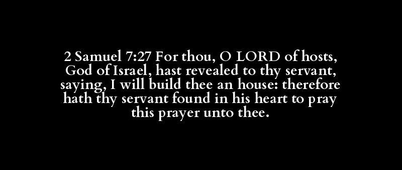 2 Samuel 7:27 For thou, O LORD of hosts, God of Israel, hast revealed to thy servant, saying, I will build thee an house: therefore hath thy servant found in his heart to pray this prayer unto thee.