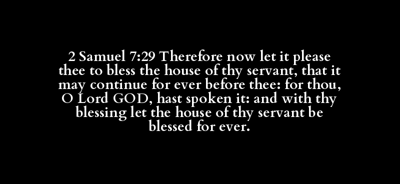 2 Samuel 7:29 Therefore now let it please thee to bless the house of thy servant, that it may continue for ever before thee: for thou, O Lord GOD, hast spoken it: and with thy blessing let the house of thy servant be blessed for ever.