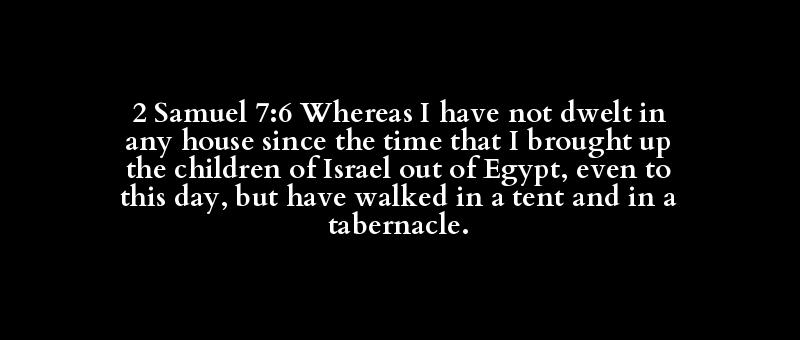 2 Samuel 7:6 Whereas I have not dwelt in any house since the time that I brought up the children of Israel out of Egypt, even to this day, but have walked in a tent and in a tabernacle.