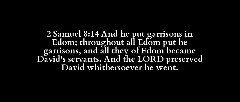 2 Samuel 8:14 And he put garrisons in Edom; throughout all Edom put he garrisons, and all they of Edom became David's servants. And the LORD preserved David whithersoever he went.