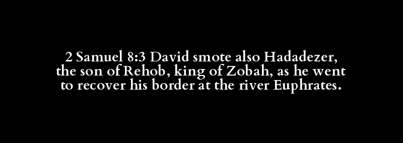 2 Samuel 8:3 David smote also Hadadezer, the son of Rehob, king of Zobah, as he went to recover his border at the river Euphrates.