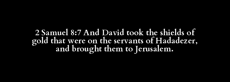 2 Samuel 8:7 And David took the shields of gold that were on the servants of Hadadezer, and brought them to Jerusalem.