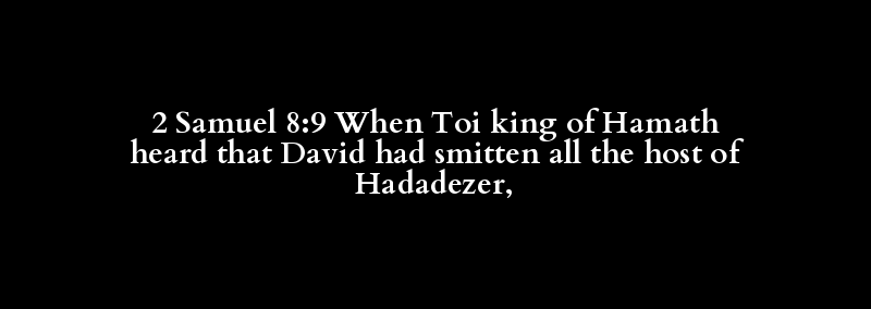 2 Samuel 8:9 When Toi king of Hamath heard that David had smitten all the host of Hadadezer,