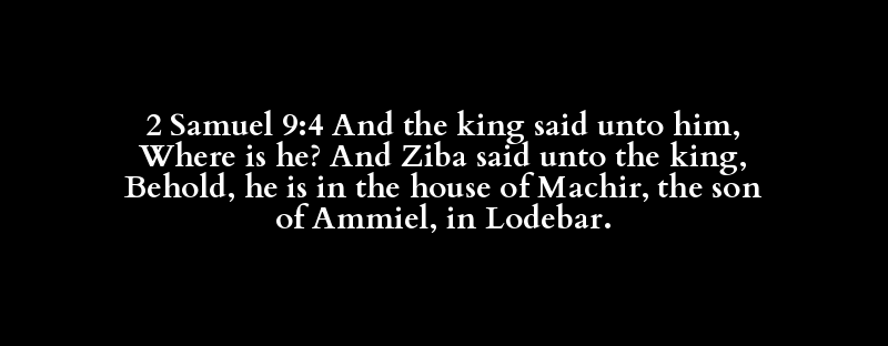 2 Samuel 9:4 And the king said unto him, Where is he? And Ziba said unto the king, Behold, he is in the house of Machir, the son of Ammiel, in Lodebar.