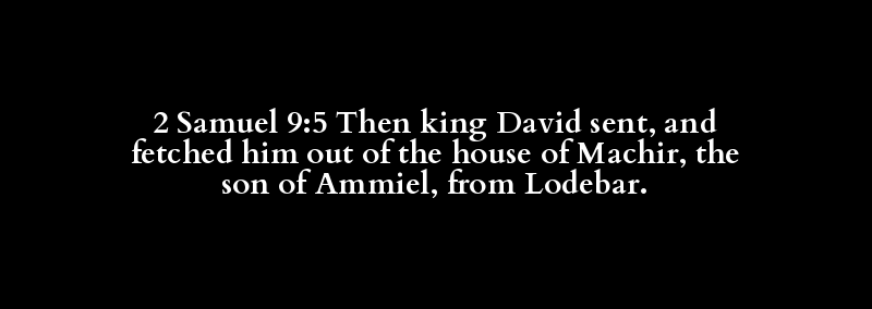 2 Samuel 9:5 Then king David sent, and fetched him out of the house of Machir, the son of Ammiel, from Lodebar.