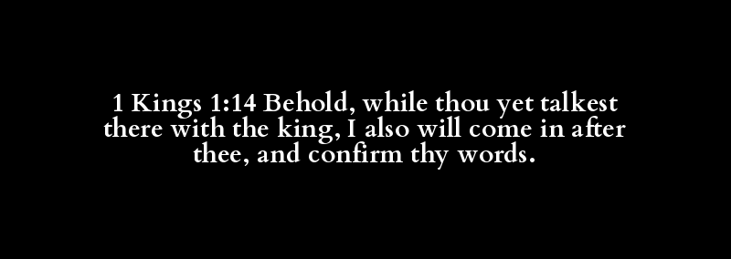 1 Kings 1:14 Behold, while thou yet talkest there with the king, I also will come in after thee, and confirm thy words.