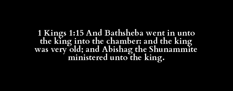 1 Kings 1:15 And Bathsheba went in unto the king into the chamber: and the king was very old; and Abishag the Shunammite ministered unto the king.