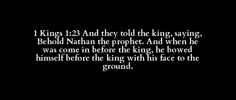 1 Kings 1:23 And they told the king, saying, Behold Nathan the prophet. And when he was come in before the king, he bowed himself before the king with his face to the ground.