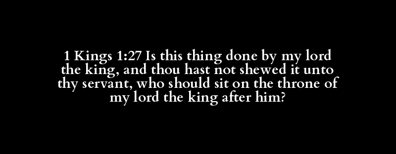 1 Kings 1:27 Is this thing done by my lord the king, and thou hast not shewed it unto thy servant, who should sit on the throne of my lord the king after him?