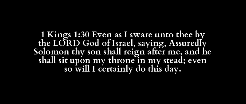 1 Kings 1:30 Even as I sware unto thee by the LORD God of Israel, saying, Assuredly Solomon thy son shall reign after me, and he shall sit upon my throne in my stead; even so will I certainly do this day.