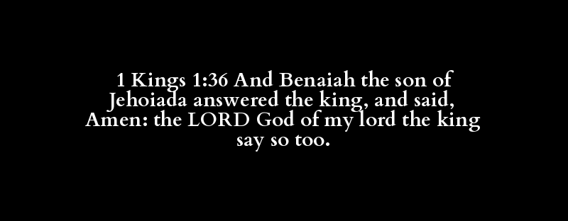1 Kings 1:36 And Benaiah the son of Jehoiada answered the king, and said, Amen: the LORD God of my lord the king say so too.
