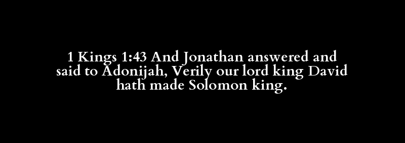 1 Kings 1:43 And Jonathan answered and said to Adonijah, Verily our lord king David hath made Solomon king.