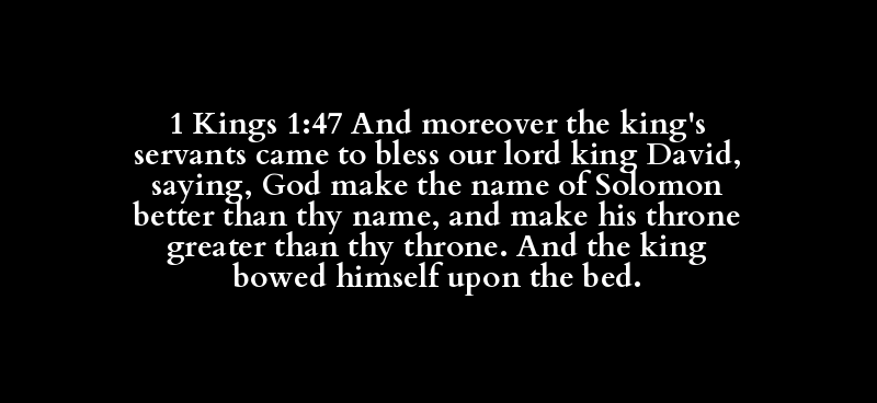 1 Kings 1:47 And moreover the king's servants came to bless our lord king David, saying, God make the name of Solomon better than thy name, and make his throne greater than thy throne. And the king bowed himself upon the bed.
