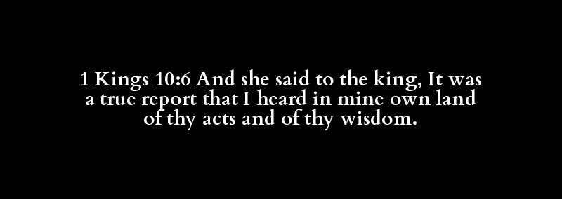 1 Kings 10:6 And she said to the king, It was a true report that I heard in mine own land of thy acts and of thy wisdom.