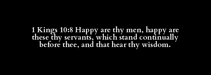 1 Kings 10:8 Happy are thy men, happy are these thy servants, which stand continually before thee, and that hear thy wisdom.