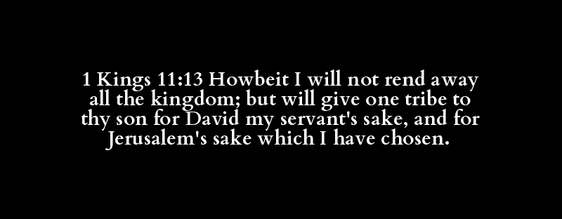 1 Kings 11:13 Howbeit I will not rend away all the kingdom; but will give one tribe to thy son for David my servant's sake, and for Jerusalem's sake which I have chosen.