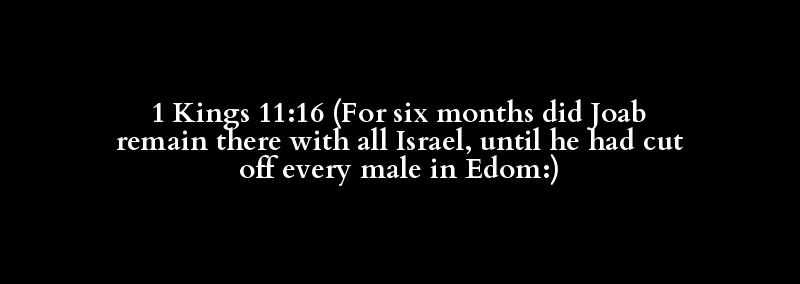 1 Kings 11:16 (For six months did Joab remain there with all Israel, until he had cut off every male in Edom:)
