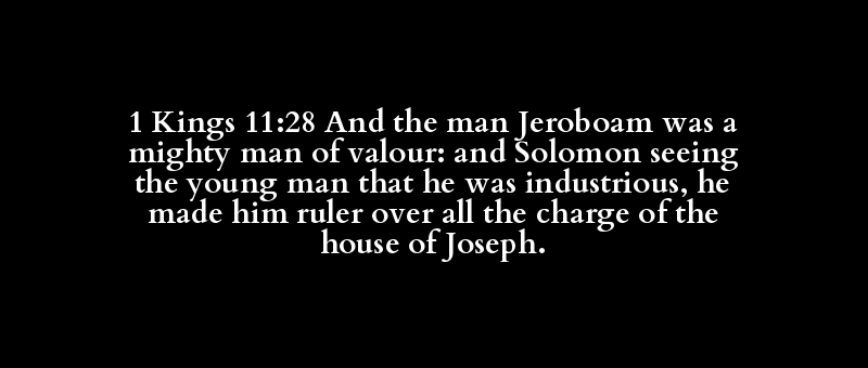1 Kings 11:28 And the man Jeroboam was a mighty man of valour: and Solomon seeing the young man that he was industrious, he made him ruler over all the charge of the house of Joseph.