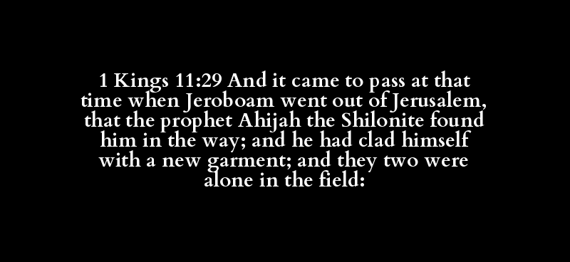 1 Kings 11:29 And it came to pass at that time when Jeroboam went out of Jerusalem, that the prophet Ahijah the Shilonite found him in the way; and he had clad himself with a new garment; and they two were alone in the field: