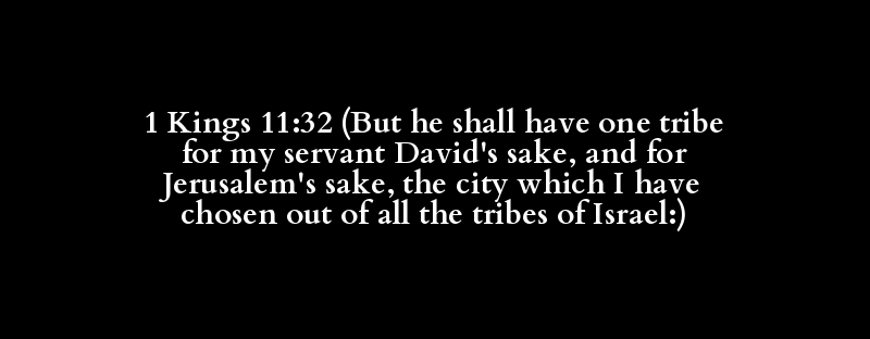 1 Kings 11:32 (But he shall have one tribe for my servant David's sake, and for Jerusalem's sake, the city which I have chosen out of all the tribes of Israel:)
