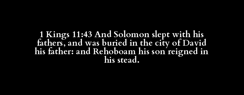 1 Kings 11:43 And Solomon slept with his fathers, and was buried in the city of David his father: and Rehoboam his son reigned in his stead.