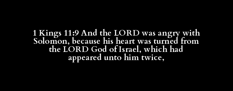 1 Kings 11:9 And the LORD was angry with Solomon, because his heart was turned from the LORD God of Israel, which had appeared unto him twice,