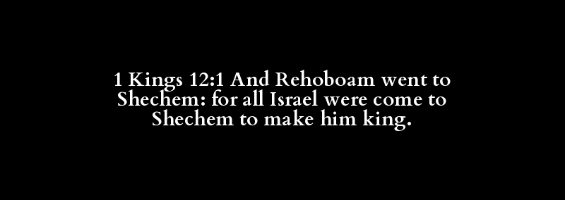 1 Kings 12:1 And Rehoboam went to Shechem: for all Israel were come to Shechem to make him king.