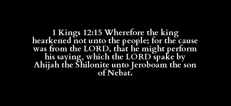 1 Kings 12:15 Wherefore the king hearkened not unto the people; for the cause was from the LORD, that he might perform his saying, which the LORD spake by Ahijah the Shilonite unto Jeroboam the son of Nebat.