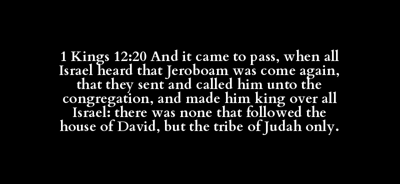 1 Kings 12:20 And it came to pass, when all Israel heard that Jeroboam was come again, that they sent and called him unto the congregation, and made him king over all Israel: there was none that followed the house of David, but the tribe of Judah only.