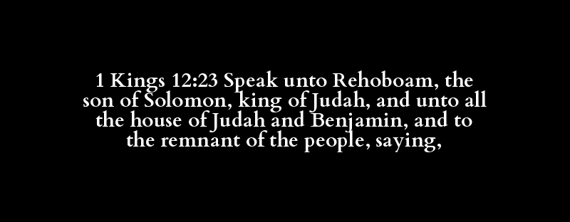 1 Kings 12:23 Speak unto Rehoboam, the son of Solomon, king of Judah, and unto all the house of Judah and Benjamin, and to the remnant of the people, saying,