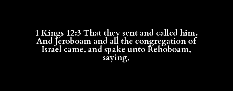 1 Kings 12:3 That they sent and called him. And Jeroboam and all the congregation of Israel came, and spake unto Rehoboam, saying,