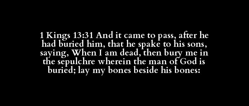 1 Kings 13:31 And it came to pass, after he had buried him, that he spake to his sons, saying, When I am dead, then bury me in the sepulchre wherein the man of God is buried; lay my bones beside his bones: