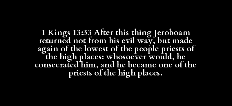 1 Kings 13:33 After this thing Jeroboam returned not from his evil way, but made again of the lowest of the people priests of the high places: whosoever would, he consecrated him, and he became one of the priests of the high places.