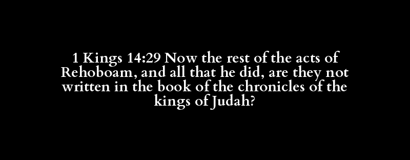 1 Kings 14:29 Now the rest of the acts of Rehoboam, and all that he did, are they not written in the book of the chronicles of the kings of Judah?