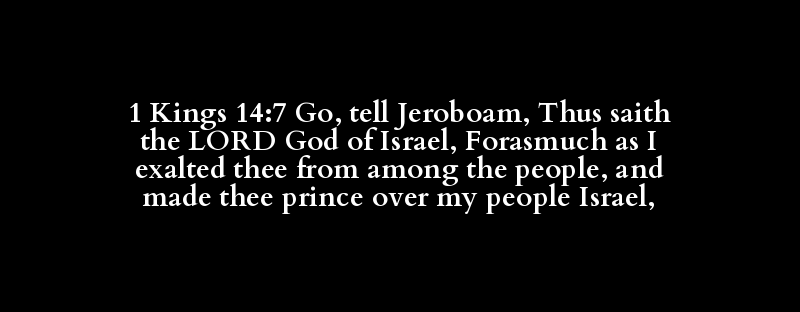 1 Kings 14:7 Go, tell Jeroboam, Thus saith the LORD God of Israel, Forasmuch as I exalted thee from among the people, and made thee prince over my people Israel,