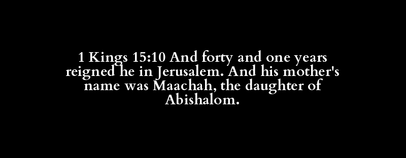 1 Kings 15:10 And forty and one years reigned he in Jerusalem. And his mother's name was Maachah, the daughter of Abishalom.