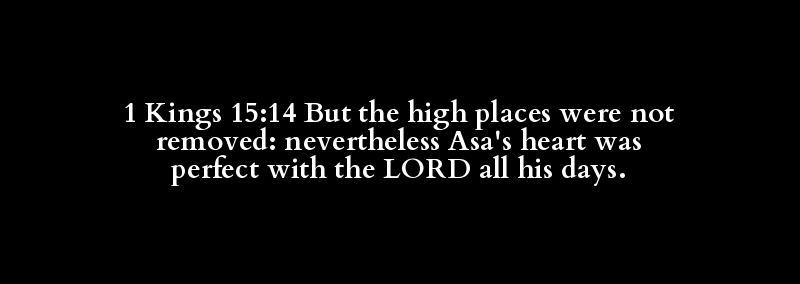 1 Kings 15:14 But the high places were not removed: nevertheless Asa's heart was perfect with the LORD all his days.