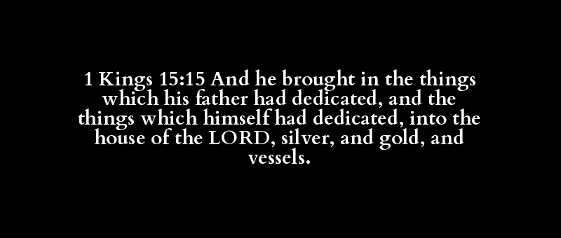 1 Kings 15:15 And he brought in the things which his father had dedicated, and the things which himself had dedicated, into the house of the LORD, silver, and gold, and vessels.
