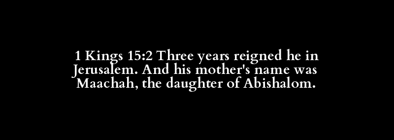 1 Kings 15:2 Three years reigned he in Jerusalem. And his mother's name was Maachah, the daughter of Abishalom.