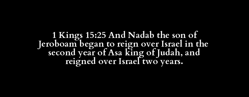 1 Kings 15:25 And Nadab the son of Jeroboam began to reign over Israel in the second year of Asa king of Judah, and reigned over Israel two years.