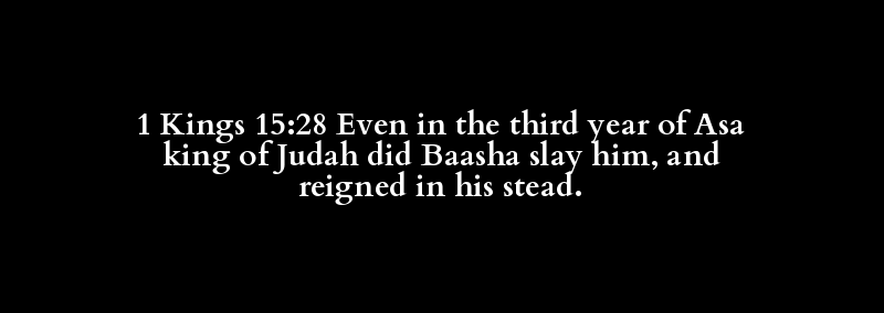 1 Kings 15:28 Even in the third year of Asa king of Judah did Baasha slay him, and reigned in his stead.