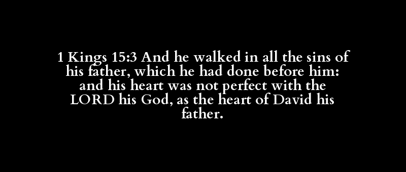 1 Kings 15:3 And he walked in all the sins of his father, which he had done before him: and his heart was not perfect with the LORD his God, as the heart of David his father.
