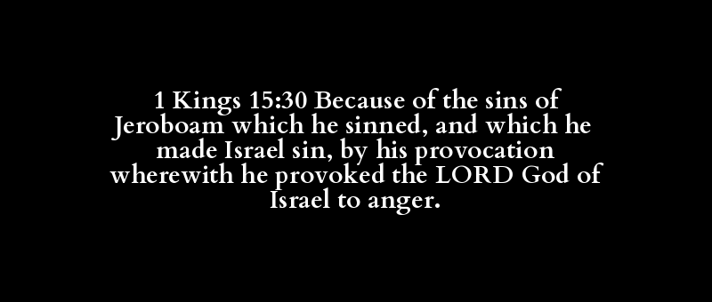 1 Kings 15:30 Because of the sins of Jeroboam which he sinned, and which he made Israel sin, by his provocation wherewith he provoked the LORD God of Israel to anger.