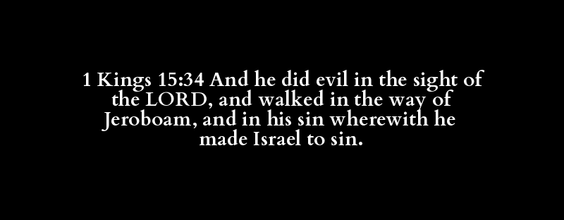 1 Kings 15:34 And he did evil in the sight of the LORD, and walked in the way of Jeroboam, and in his sin wherewith he made Israel to sin.