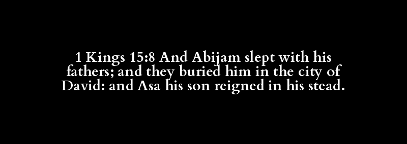 1 Kings 15:8 And Abijam slept with his fathers; and they buried him in the city of David: and Asa his son reigned in his stead.