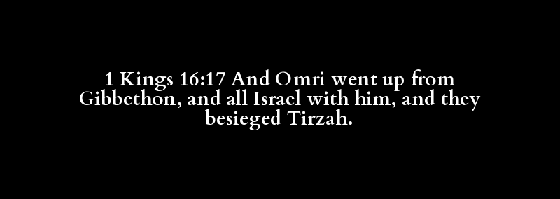 1 Kings 16:17 And Omri went up from Gibbethon, and all Israel with him, and they besieged Tirzah.
