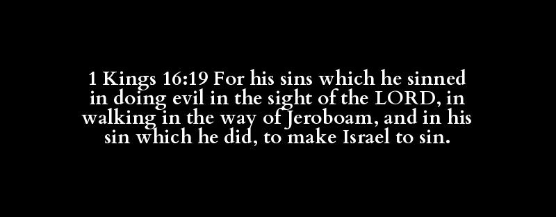 1 Kings 16:19 For his sins which he sinned in doing evil in the sight of the LORD, in walking in the way of Jeroboam, and in his sin which he did, to make Israel to sin.
