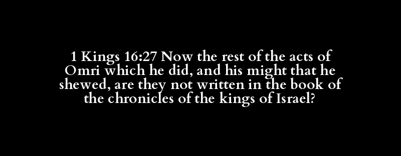 1 Kings 16:27 Now the rest of the acts of Omri which he did, and his might that he shewed, are they not written in the book of the chronicles of the kings of Israel?