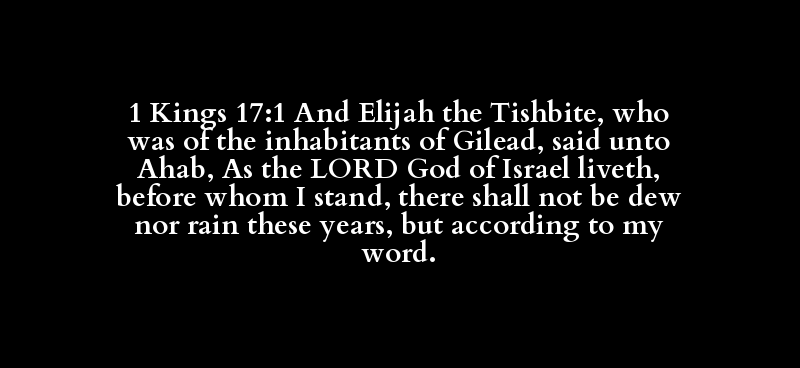 1 Kings 17:1 And Elijah the Tishbite, who was of the inhabitants of Gilead, said unto Ahab, As the LORD God of Israel liveth, before whom I stand, there shall not be dew nor rain these years, but according to my word.